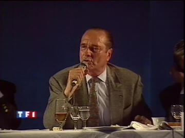 Immigration : phrase polémique de Jacques CHIRAC lors d'une fin de banquet à Orléans ("le bruit et les odeurs"). Extrait du discours (images TF1).